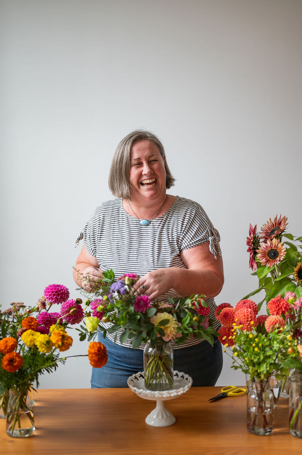 Brianne Emhiser, owner and founder of stem & vine, spent her childhood summers in Maine, surrounded by salt air, wildflowers, and long days outdoors. Raised by a mother who loved gardening, she developed an early appreciation for plants and the quiet beauty of the natural world. After studying botany in school, her first step into floral design came when her sister was in need of wedding flowers—a meaningful moment that sparked a lasting passion. Years later, that passion has grown into a dedicated career. Brianne prioritizes sourcing from local flower farmers and is deeply committed to sustainability, honoring seasonal blooms and the land they come from. Each arrangement reflects her connection to nature, nostalgia, and all things local!